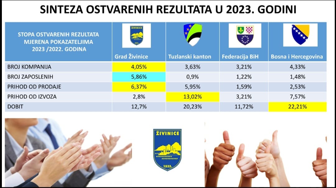 Grad Živinice se ističe kao lider u razvoju i ekonomskim pokazateljima, nadmašujući mnoge općine u Tuzlanskom kantonu (TK), Federaciji Bosne i Hercegovine, pa čak i cijeloj zemlji. Zahvaljujući kontinuiranom radu lokalne uprave i saradnji s poslodavcima, Živinice bilježe značajan rast u broju kompanija, ekonomskoj dobiti, ali i porast broja stanovnika, što pokazuje da ljudi biraju ovaj grad za život i povratak.