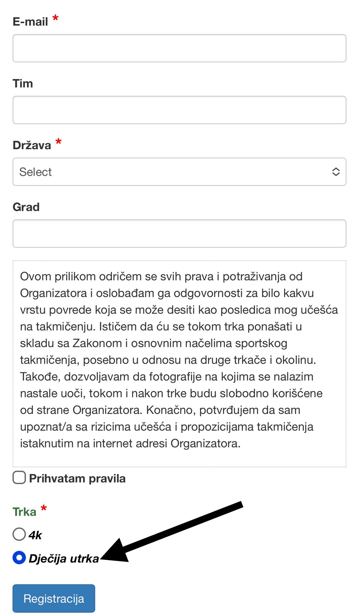 Učešće za dječiju utrku je u potpunosti besplatno.
