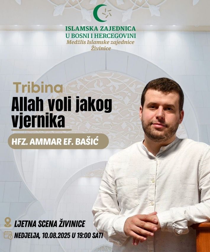 U okviru vjerskih i kulturnih događaja ovog ljeta, u Živinicama će biti upriličena tribina pod nazivom “Allah voli jakog vjernika”, koju će održati jedan od najpoznatijih islamskih predavača današnjice – hafiz Ammar ef. Bašić.