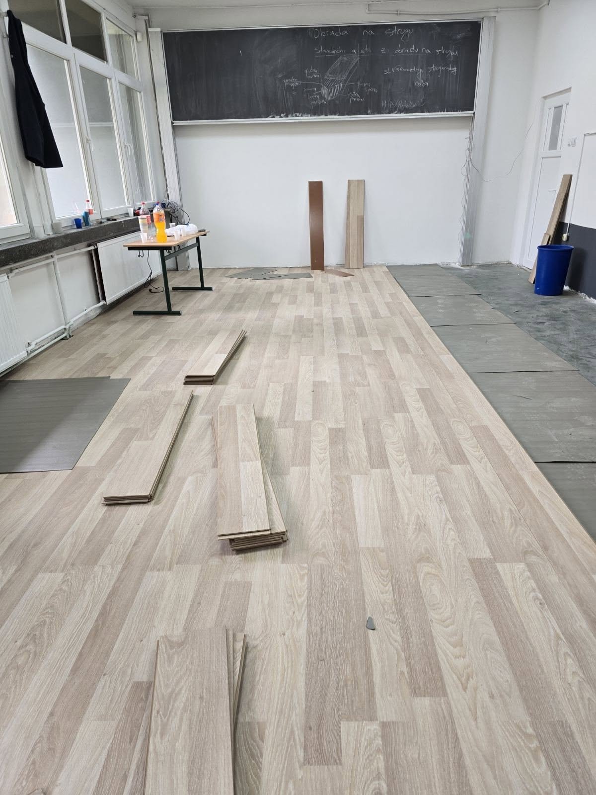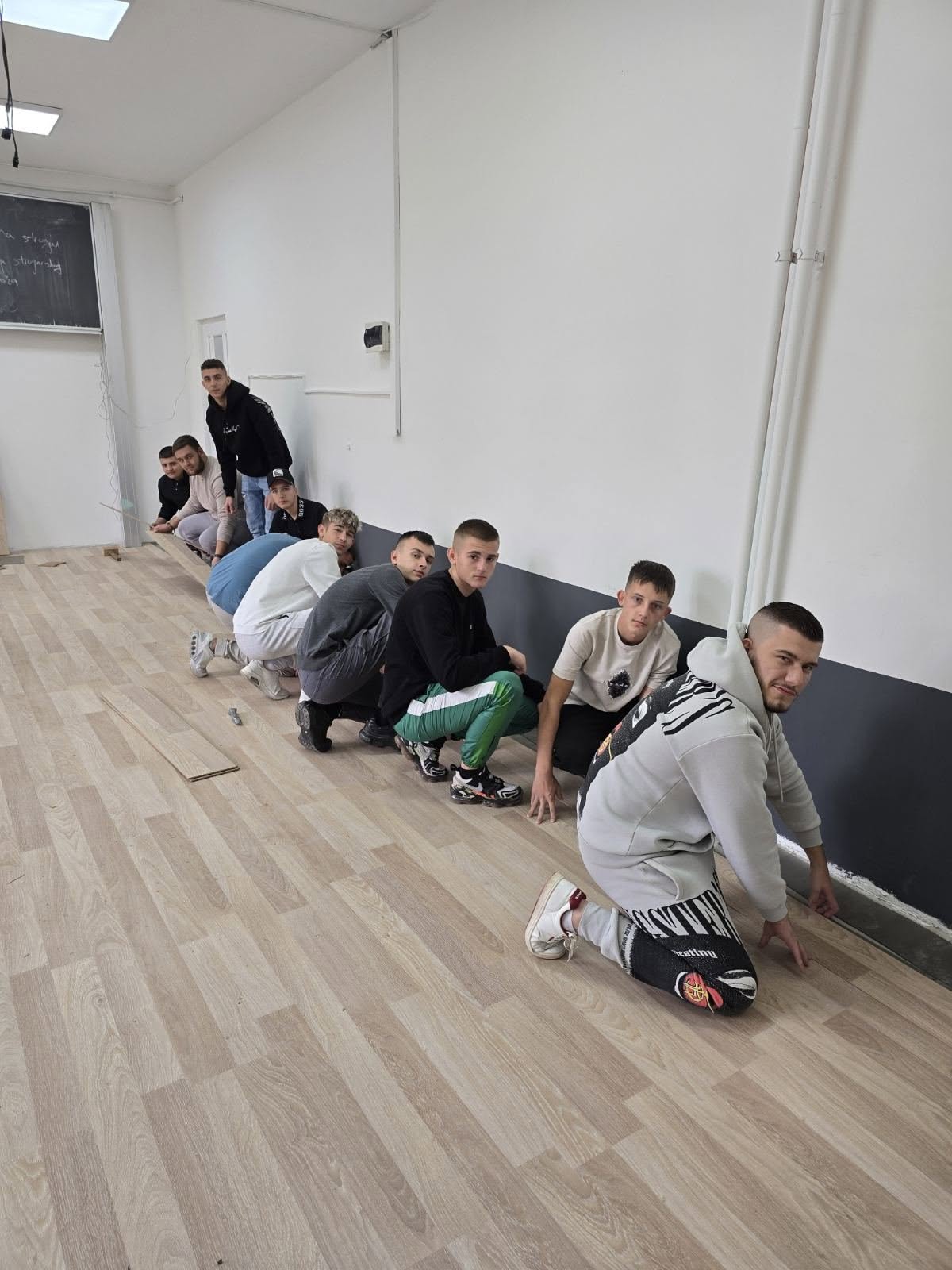 Učenici drvne struke, zajedno sa prof. Samirom Spahićem, radili su na postavljanju laminata, dekorativnim zidnim rješenjima i drugim radovima koji su starim učionicama dali potpuno novu toplinu i izgled.