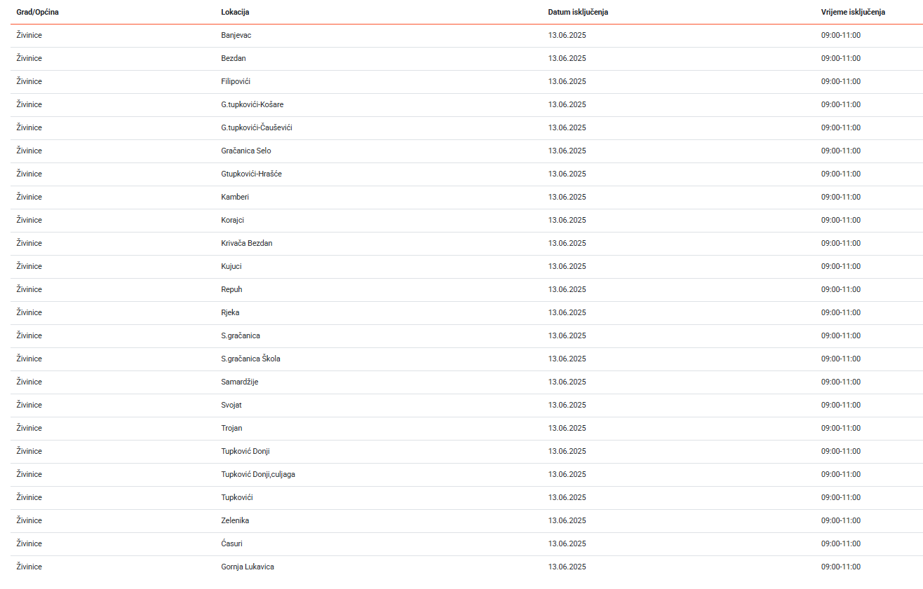 Prekidi su najavljeni u periodu od 9:00 do 11:00 sati.